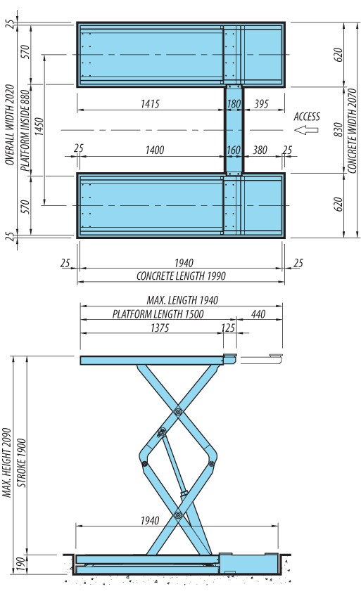 Bản vẽ kích thước cầu nâng Heshbon HL-35F