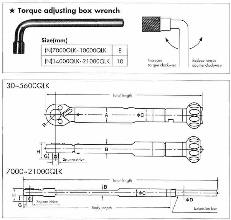 7000QLK | 10 ~ 70 // | 0.5 // | N7000QLK | N700QLK | 100 ~ 700 // | 5 // | 1,314 | 46 | 19.2 | 35.4 | 27.2 | 990 | 6.2 | Torque adjusting box wrench | |||||||
