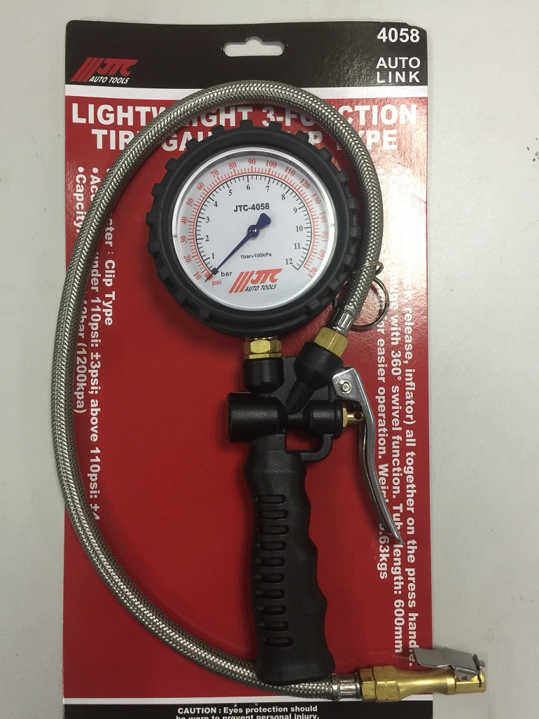 JTC-4058 LIGHTWEIGHT 3-FUNCTION TIRE GAUGE- CLIP TYPE