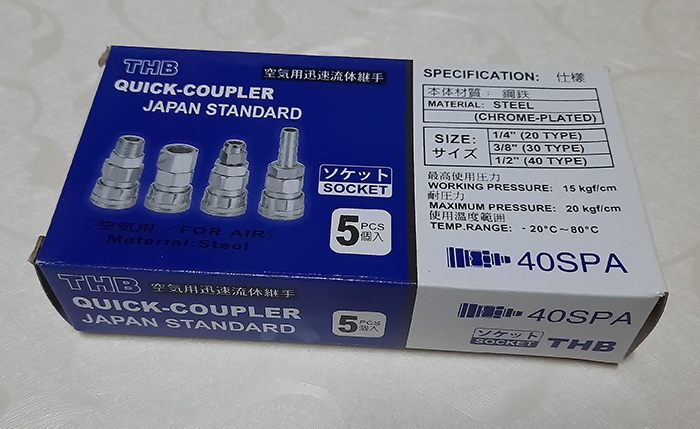 Giắc nối nhanh dùng trong khí nén THB 40SPA Mã sản phẩm: 40SPA Hãng Sản Xuất: THB Xuất Xứ: Taiwan Chất Liệu: Thép không rỉ Ren: PT Áp suất làm việc: 218 PSI ( 15Bar / 1.5MPa ) Áp suất lớn nhất:290 PSI ( 20Bar / 2MPa ) Phạm vi nhiệt độ: -20°C~ +180°C Kích thước: 1/4" (20SPA) 3/8” ( 30SPA) 1/2” (40SPA)