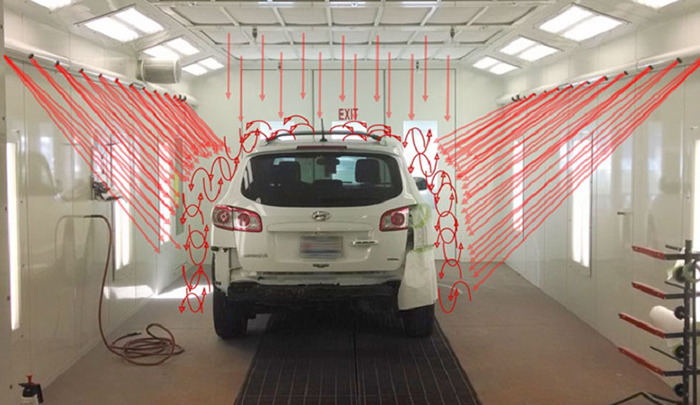 - Bộ thổi khí được sử dụng để tăng tốc độ và tạo xoáy cho luồng khí nóng trên bề mặt vật sơn. Điều này sẽ làm cho dung môi trong sơn sẽ bay hơi nhanh hơn (đặc biệt là dung môi trong sơn gốc nước với đặc tính khó bay hơi hơn sơn gốc dầu).