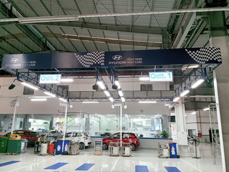 Bao gồm khung giá treo trần nhận diện thương hiệu Hyundai theo đúng tiêu chuẩn HTC