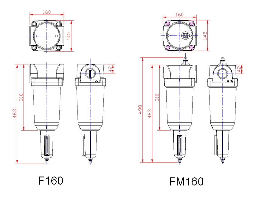 3. Đèn báo (FM160): chỉ báo màu đỏ sẽ tăng lên khi phần tử lọc