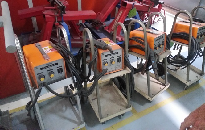 Một góc xưởng sửa chữa để máy hàn rút tôn